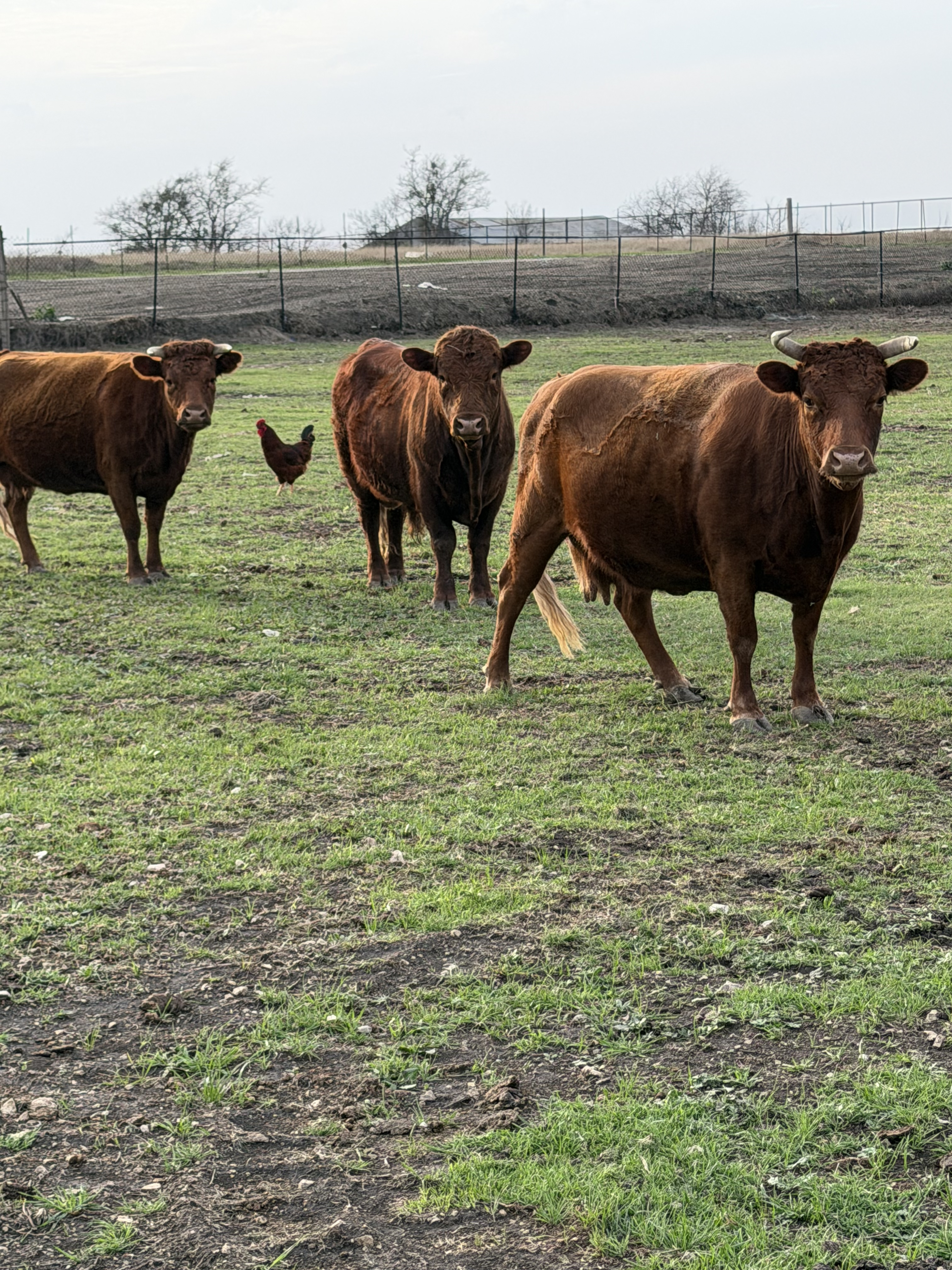 Brutus is our sweet steer. He is always looking for a snack or a tree to rub on. He can be found chasing roosters and laying in the shade.