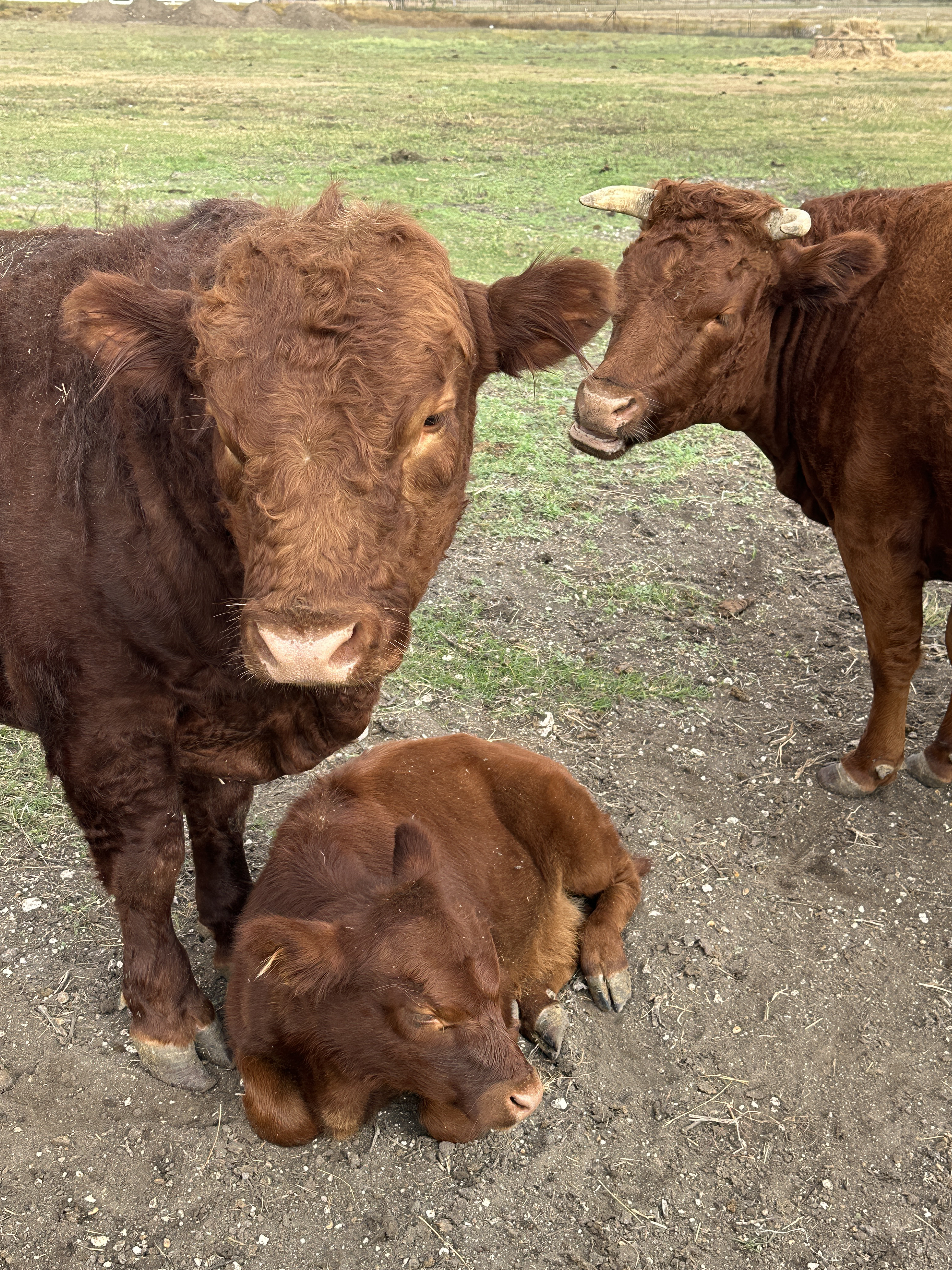 Lucy is our littlest lady. She is a great mom and loves to lay in the warm hay enjoying the Texas sun. She is also a great calf day care provider.